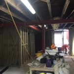 The steelwork in the basement is complete and the stud walls erected for the ensuite shower room .
